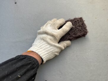 付着した汚れを落とし、塗料密着向上のためにケレン作業を行います。