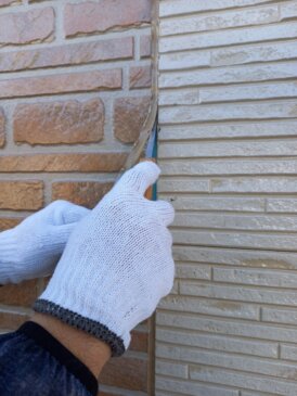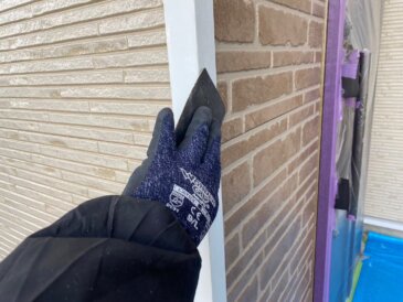 コーキング撤去作業の様子です。