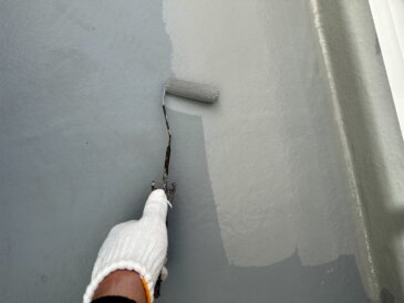 塗膜を厚くするためにローラーにしっかり塗料をつけて塗装しました。